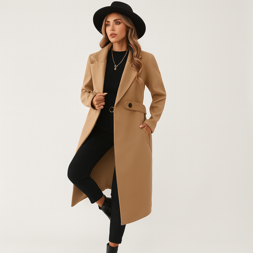 Oplev den perfekte kombination af elegance og varme med Elaviras lange tweedfrakke. Den H-formede silhuet og det justerbare bælte fremhæver din figur og sikrer komfort hele dagen, samtidig med at de beskytter dig stilfuldt mod kulden. Den asymmetriske kant og revers gør den til det ideelle valg til både dag og aften.