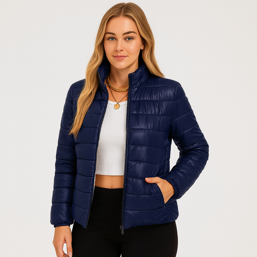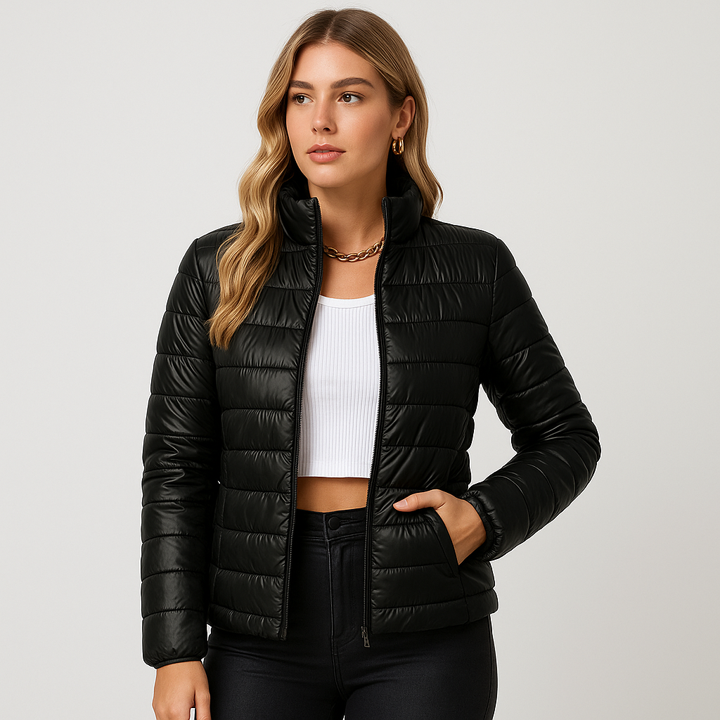 Quiltet dynejakke | Det essentielle kombinerer let isolering med et stilrent udtryk. Denne korte pufferjakke er fremstillet med fokus på komfort og funktionalitet og passer til både hverdagsbrug og overgangsvejr.