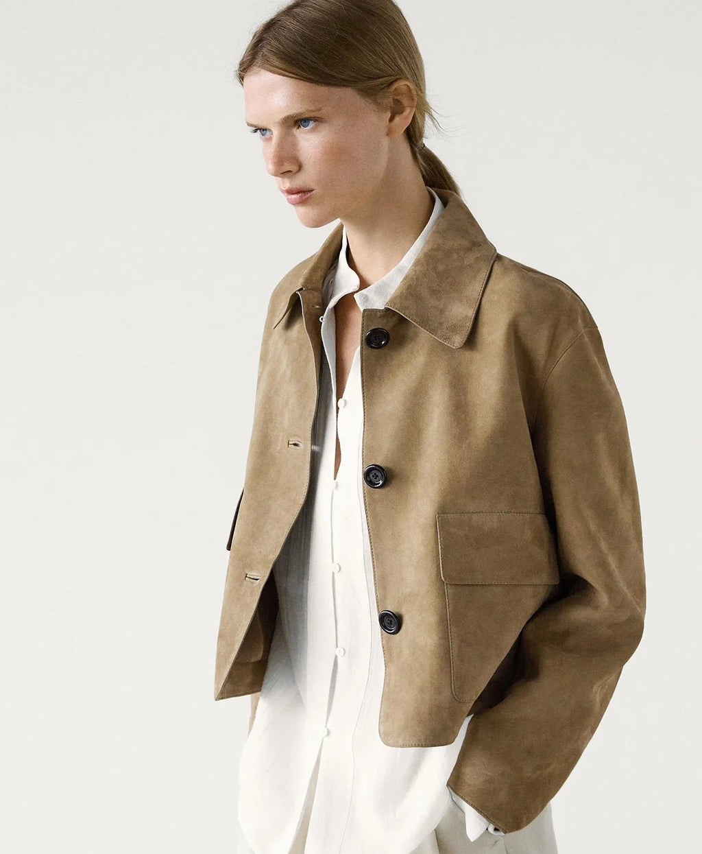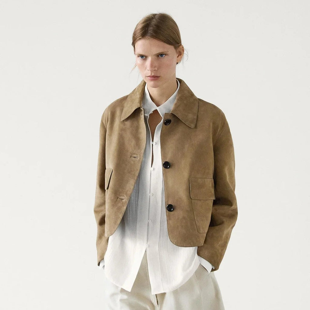 Med sit moderne snit og luksuriøse ruskindsfinish løfter denne jakke let ethvert outfit. Den praktiske lomme gør den perfekt til hverdagsbrug, samtidig med at den holder dig trendy.