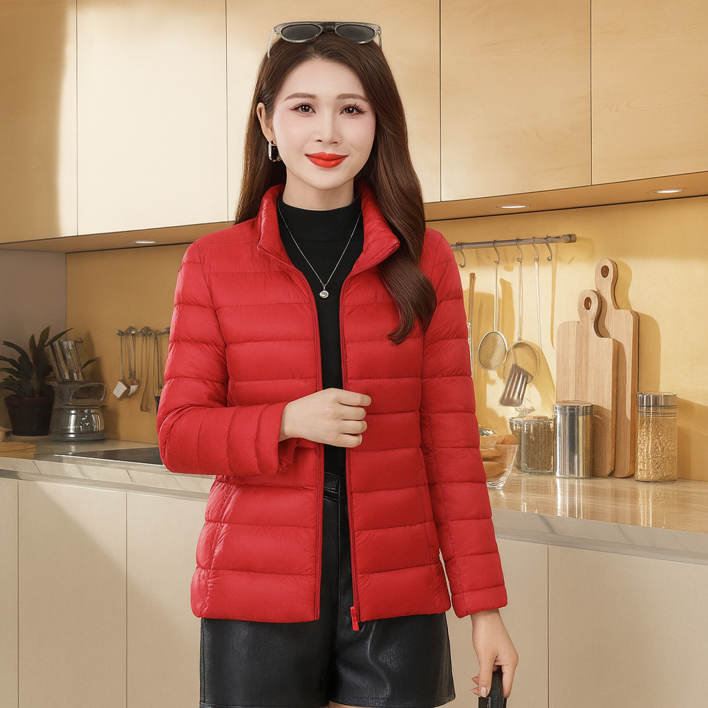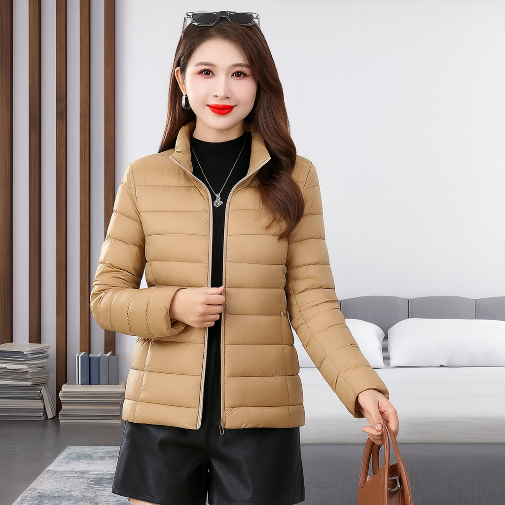 Fremstillet af slidstærkt, maskinvaskbart materiale, er frakken designet til at beskytte mod kulden og bevare et elegant udtryk. Den høje krave og det quiltede inderfor giver ekstra varme og en flatterende form – velegnet til både byture og mere formelle lejligheder.