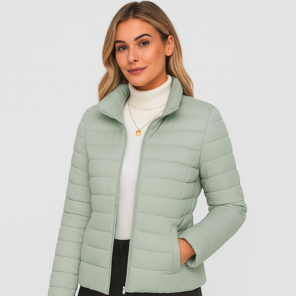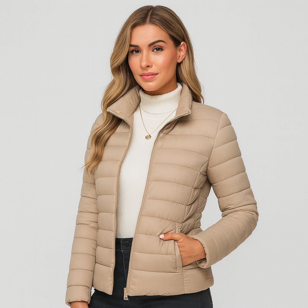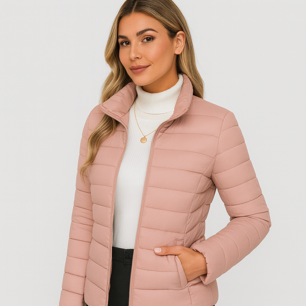 Fremstillet af slidstærkt, maskinvaskbart materiale, er denne frakke designet til at holde dig chic, mens den beskytter mod kulden. Den høje krave og det quiltede inderfor giver både varme og en slank, feminin form – ideel til alt fra byture til mere formelle lejligheder.